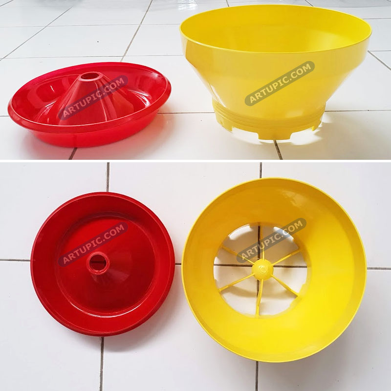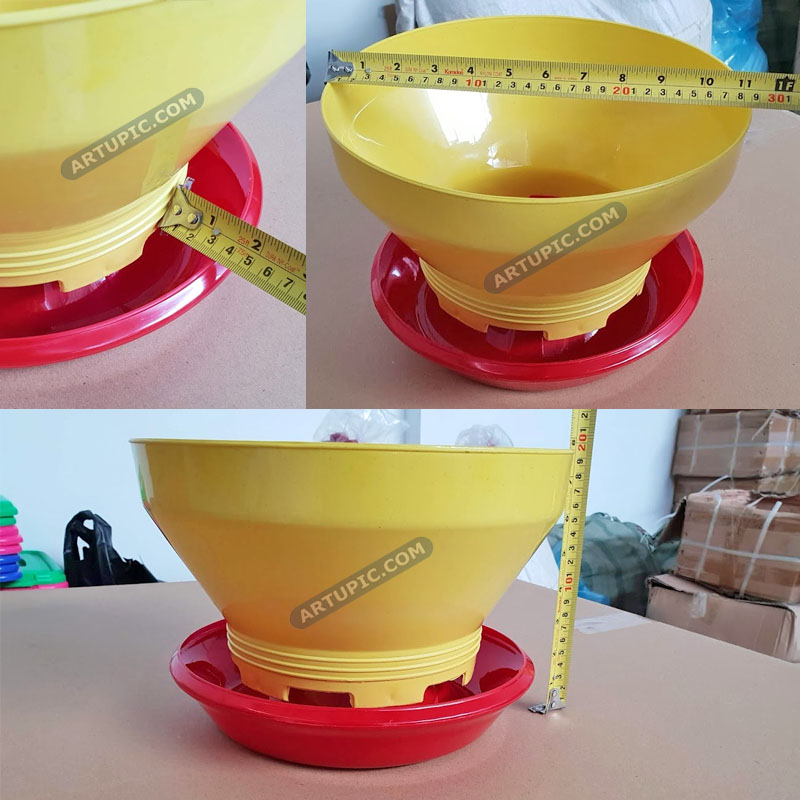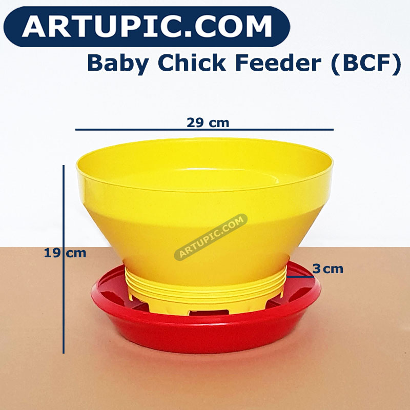 | Baby Chick Feeder tempat makan ayam kecil. Aman dan ayam tidak bisa menggaruk makanan sehingga tidak tercecer. Terbuat dari plastik yang keras dan tahan abrasi. Spesifikasi & Keterangan = + Diameter 29 cm + Ideal untuk 40-50 ekor anak ayam |