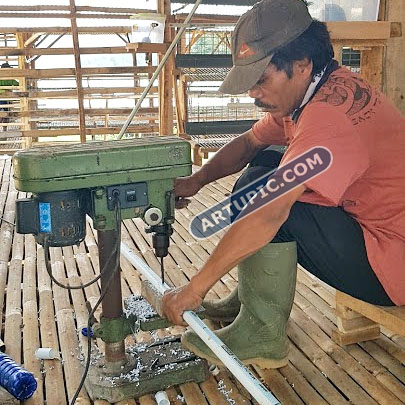 Anda bisa menggunakan bor tangan biasa maupun bor duduk.