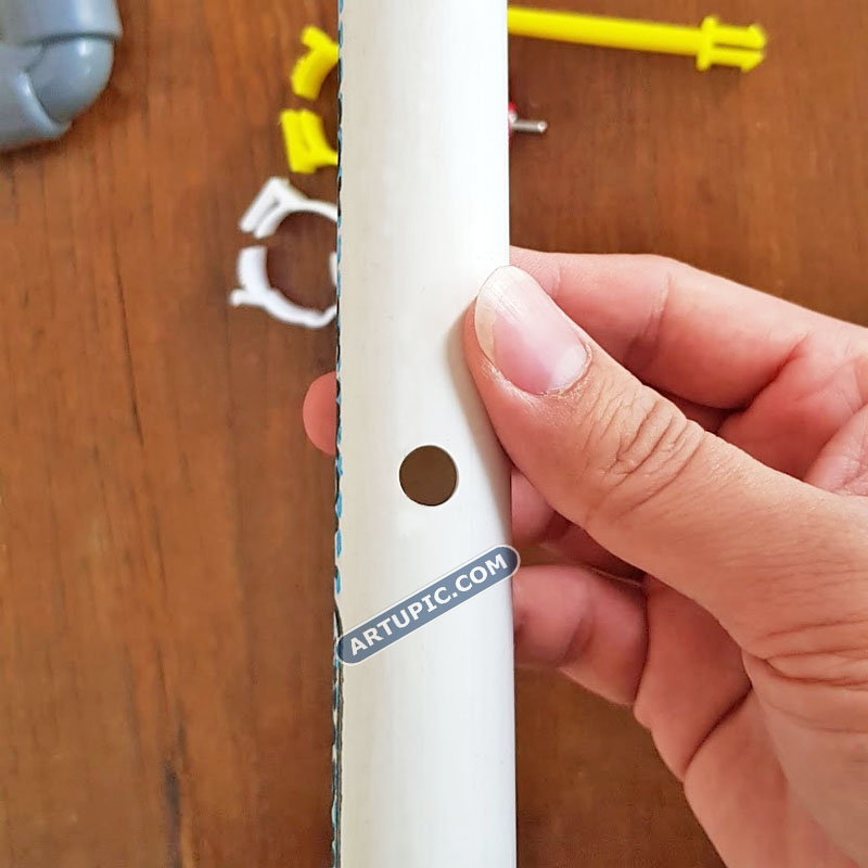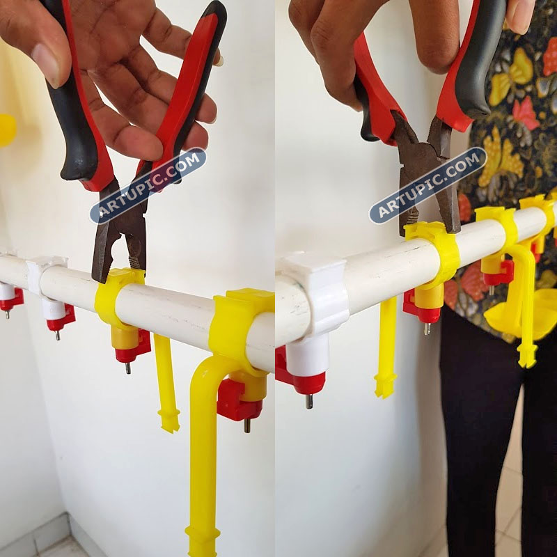 Nipple di klip ke pipa menggunakan tangan kemudian diperkuat dengan tang.