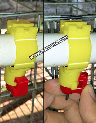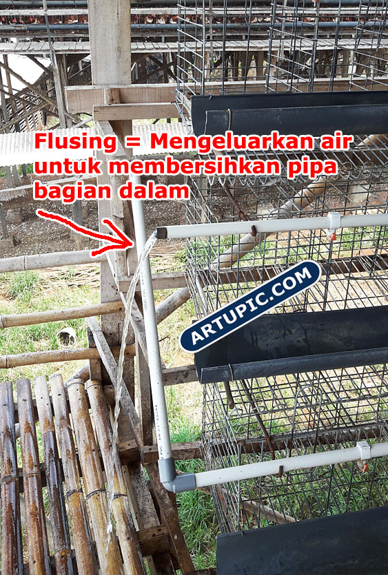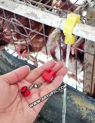 dia diciptakan agar mudah dilepas dari pralon RUTIN FLUSING = Apa itu flusing? Adalah kegiatan membuang air dari torent melewati box air dan nipple. Tujuannya supaya kotoran atau lendir yang menyangkut didalam jalur pipa bisa terbuang. Sehingga nipple tidak tersumbat. Ini adalah kegiatan yg penting untuk peternak yang menggunakan nipple tipe apapun. Bahkan akan semakin maksimal lagi jika pipa di tembak menggunakan semprotan bertekanan tinggi. Atau ada juga yang menggunakan obat khusus untuk flusing (lumayan mahal sih). Farm Artupic belum pernah menggunakan obat khusus tersebut, paling banter pakai kaporit direndam setengah hari kemudian baru di flushing buang semua air kotor. |