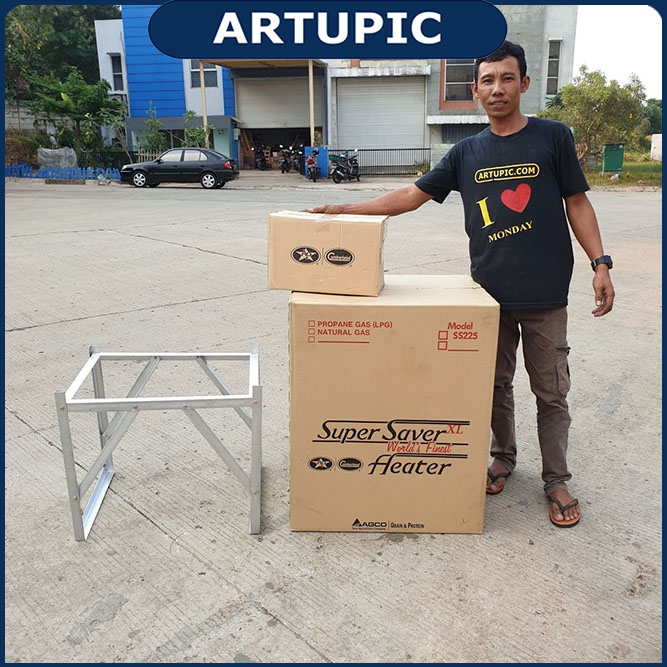 Jika kandang Open maka alat ini tidak bisa menghasilkan panas maximal. Produk dari kami jual sudah termasuk Kaki Besi sebagai dudukan Super Saver, juga sudah termasuk asesoris berupa Selang gas dan Regulator gas. Anda tinggal menyiapkan tabung gas LPG. Kemudian Super Saver Heater Siap dipakai. Dan produk ini bisa disambungkan dengan alat Temptron agar Anda bisa menentukan batas suhu ruangan yang di inginkan. Spesifikasi & Kelebihan = + Listrik = 1100 watt + Ampere = 4.8A + Volt = 230V / 1 Phase + BTU/kw = 225.000BTU/65.9kw + Ukuran = 68 x 60 x 83 cm + Berat = 65kg + dus aksesoris 4kg + Made in USA |