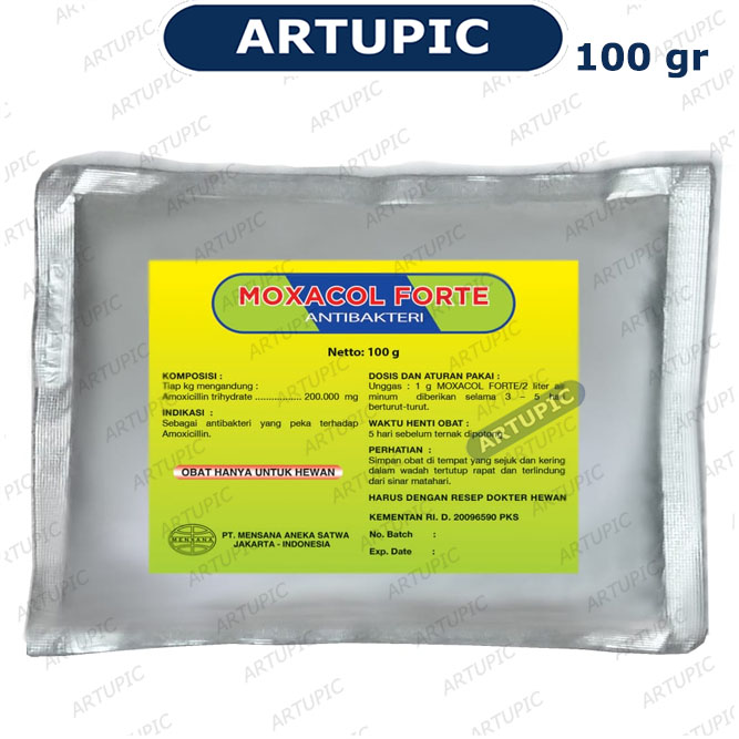 Salmonellosis. lNDlKASl = Sebagai antibakteri yang peka terhadap amoxicillin. Colibacillosis, Fowl Cholera, Staphylococcosis dan Salmonellosis KANDUNGAN per Kg = Amoxicilin 200.000 mg ATURAN PAKAI dan DOSIS = (oral) Unggas = 1 gr / 2 ltr air minum setara dengan 0.1 gr Moxacol /kg BB per hari. diberikan selama 3-5 hari berturut-turut. PERHATIAN = .+ Waktu henti obat 5 adalah 5 hari sebelum ternak dipotong. + Simpan obat ditempat sejuk dan terlindung dari sinar matahari. .+ Harus dengan resep dokter hewan. .+ Obat hanya untuk hewan KEMASAN = Sachet @100gr (1 ember 10 kg berisi 100 sachet @100 gram) Produsen = PT. Mensana Aneka Satwa #moxacol #moxacolforte #moxacolplus #antibakteri #amoxicilline #colibacillosis #fowlcholera #staphylococcosis #salmonellosis #unggas #antibiotikhewan #ayam #nekrotik #enteritis #salmonela #kolera #koli #colli #mensana #artupic |