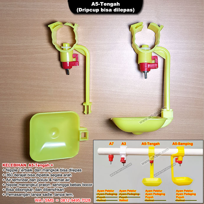 Nipple Artupic A5 adalah nipple yang telah lulus uji di Institute Pertanian Beijing China. Kualitas dan Fungsi berjalan sangat baik dan terpercaya. Kami juga telah menguji di kandang sendiri.