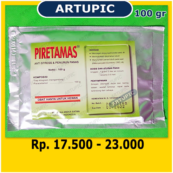 | PIRETAMAS 100 gram Untuk mencegah stress pada ayam saat kondisi sakit, dapat meningkatkan daya tahan tubuh dan menurunkan panas tubus saat terinfeksi penyakir seperti gumboro CRD atau lainnya. lNDlKASl = - Mencegah stress saat kondisi sakit - meningkatkan daya tahan tubuh - menurunkan panas tubuh pada saat infeksi penyakit (gumboro, CRD, dll) KANDUNGAN per Kg = Paracetamol 100gr Vitamin C 200gr Sorbitol 700gr ATURAN PAKAI dan DOSIS = diberikan lewat air minum unggas : 1gr/ ltr air minum selama 3-5 hari berturut-turut. PERHATIAN = .+ Simpan obat ditempat sejuk dan terlindung dari sinar matahari. .+ Harus dengan resep dokter hewan. .+ Obat hanya untuk hewan KEMASAN = Sachet @100gr (1 ember isi 100 sachet @100 gram) Produsen = PT. Mensana Aneka Satwa #piretamas #antistressayam #kekebalanayam #infeksiayam #gumboro #crd #paracetamol #obathewan #mensana #artupic #obatayam #obatternak #obatunggas #ayam #ayammerah #ternak #hewan #hewanpeliharaan #hewanpiaraan #hewanternak #peternakan #peternak #perlengkapanhewan #keperluanhewan #hewanternak |
