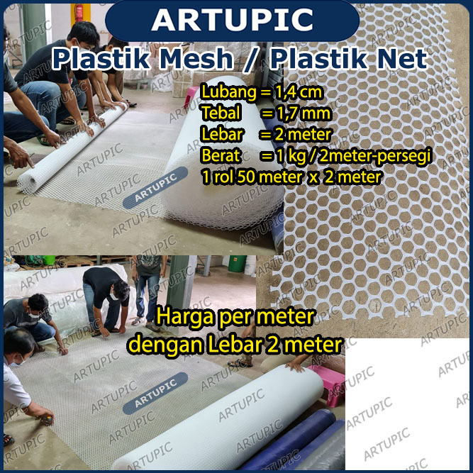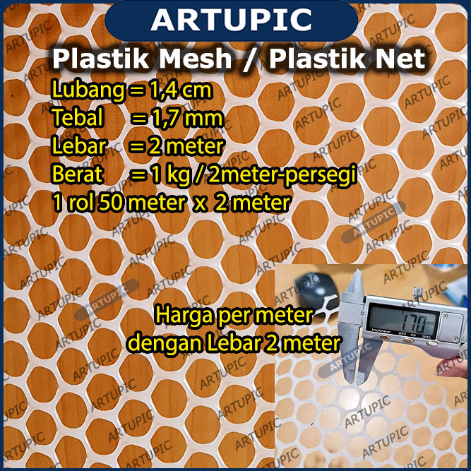 | Plastik seperti jaring digunakan untuk alas lantai kandang ayam dan puyuh. Kaki ayam aman tidak ceplos dari umur DOC/DOQ sampai DEWASA. Plastik sangat tebal 1,7 mm akan awet bertahun-tahun pakai. Lubang 1,4 cm paling ideal. Produk import standart international digunakan oleh peternak manca negara. Spesifikasi & Kelebihan = + Lubang = 1,4 cm + Tebal = 1,7 mm + Lebar = 2 meter + Berat = 1 kg / 2meter-persegi + Ukuran 1 rol = 50 meter x 2 meter + Material = Plastik PVC + Warna = Putih Import = China |
